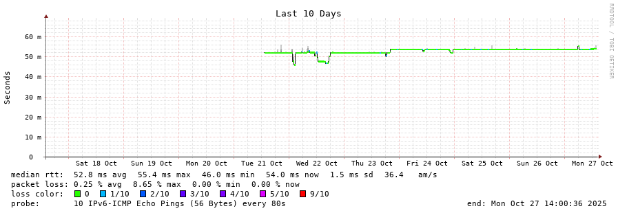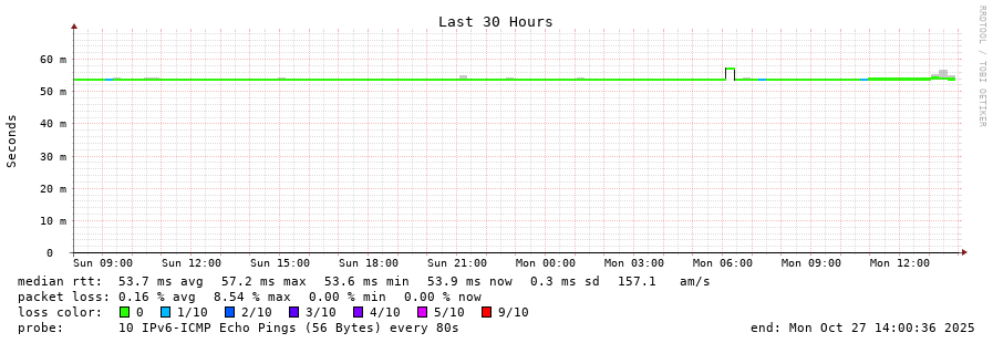 traceroute to 2a0c:9a40:8610:e3f::1 (2a0c:9a40:8610:e3f::1), 30 hops max, 80 byte packets - Generated at 2025-10-26 23:15:01