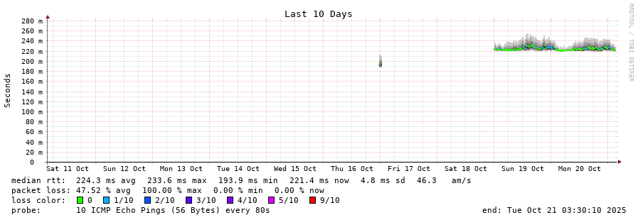 19 > 250.71.75.177.in-addr.arpa (177.75.71.250) [AS53087] 217.553ms