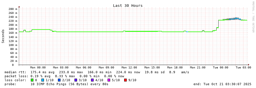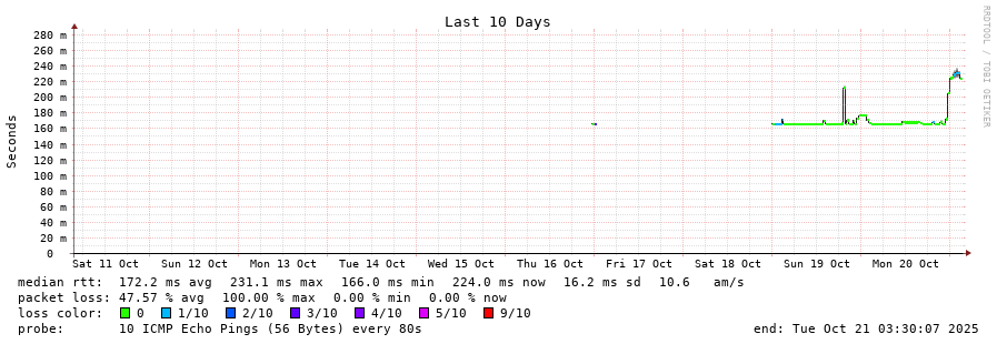 traceroute to 130.250.228.10 (130.250.228.10), 30 hops max, 60 byte packets - Generated at 2025-10-20 15:45:01