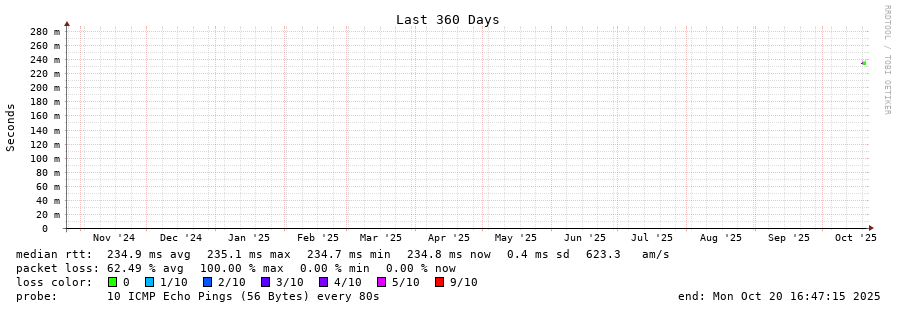 18 > 25.43.0.138.globenet.net (138.0.43.25) [AS52320] 225.539ms 225.536ms 225.554ms