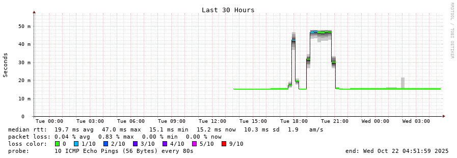 traceroute to 41.226.21.100 (41.226.21.100), 30 hops max, 60 byte packets - Generated at 2025-10-22 04:30:01