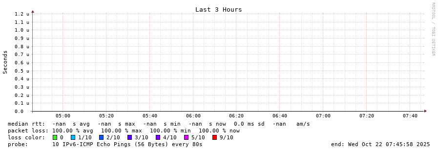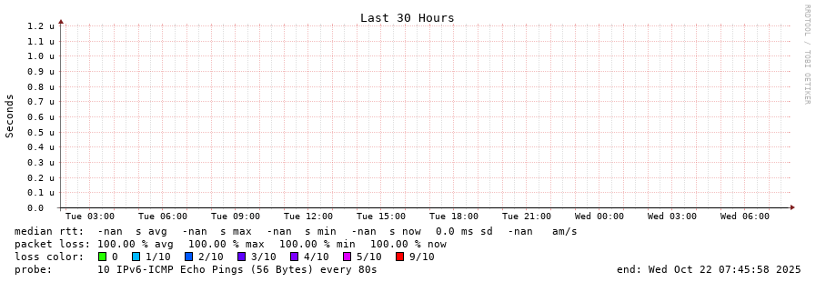 traceroute to fd78:93ae:fdfe::2 (fd78:93ae:fdfe::2), 30 hops max, 80 byte packets - Generated at 2025-10-21 22:30:01