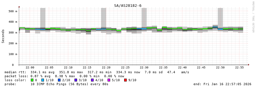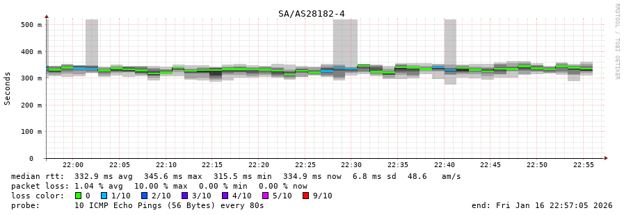 13. Median RTT 0.334 seconds